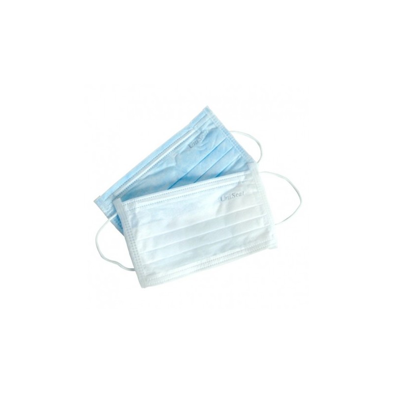 Máscara cubre boca y nariz desechable con adaptador nasal anatómico. Consta de 3 capas: capa hidrofóbica externa (repele los líquidos), capa filtrante de microorganismos (capa intermedia) y capa hidrofílica interna (absorbe lo líquidos).