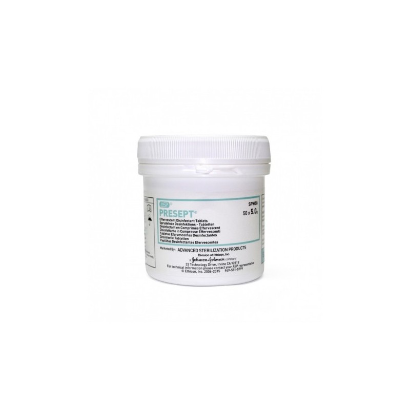 Desinfectante y descontaminante de superficies, mobiliario y equipo médico. Disueltas en agua las tabletas forman una solución de ácido hipocloroso, eficaz acción desinfectante proporcionando una solución estable hasta por 12 hr.
