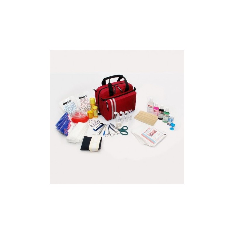 Botiquín mochila tipo maletín equipado con cierre corrido de lado a lado que permite abrir totalmente y visualizar todo el equipo y materiales. Ideal para enfermeras, médicos, paramédicos, oficinas, clubes deportivos, etc.