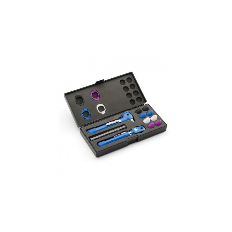 Incluye: espéculos, accesorios de cuatro colores, 2 mangos y un estuche rígido.
