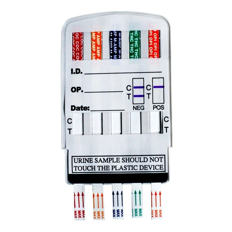 El antidoping de 5 parámetros es una prueba rápida en forma de peineta que se utiliza en la detección del uso de (cocaína, mariguana, anfetaminas, m-anfetaminas y opiáceos) en orina.