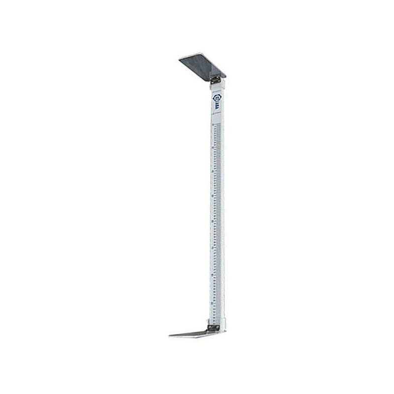 Fabricado con tubo rectangular de aluminio, protegido con regatones plásticos, cubierto con cenefa graduada color gris plata. Cuenta con paletas de acrílico que funcionan como topes para realizar mediciones de 0 a 100 cm.